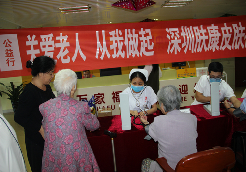 2018年11月19日下午,为继承和发扬中华传统美德,深入开展社会公益服务活动。由深圳肤康皮肤病专科主办的 “关爱老人 从我做起” 公益行,爱心公益义诊活动。在深圳市南山区西丽万家福养老院举行。